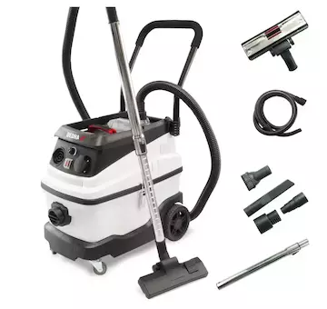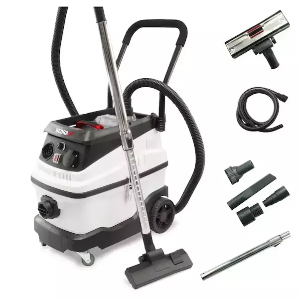 Průmyslový vysavač DED6603 je vhodný pro suché i mokré čištění (odsávání vody). Umožňuje čištění jakéhokoli povrchu v domácnosti i v komerčních prostorách. Umožňuje rychle a pohodlně uklidit pracoviště, odstranit nečistoty a zbytky po vrtání, řezání a broušení. Tento vysavač je vhodný pro odstraňování sádrového prachu. Vysavač je vhodný k odstraňování sádrového pr achu. Díky funkci foukání umožňuje vysavačvyfoukat těžko přístupná místa. Vysavač má přídavnou elektrickou zásuvku a synchronizovanou funkci. Regulátor sacího výkonu umožňuje optimální nastavení pracovních podmínek v závislosti na odstraňovaných nečistotách. Vysavač je navíc vybaven vodním filtrem pro zachycení nečistot ze vzduchu.